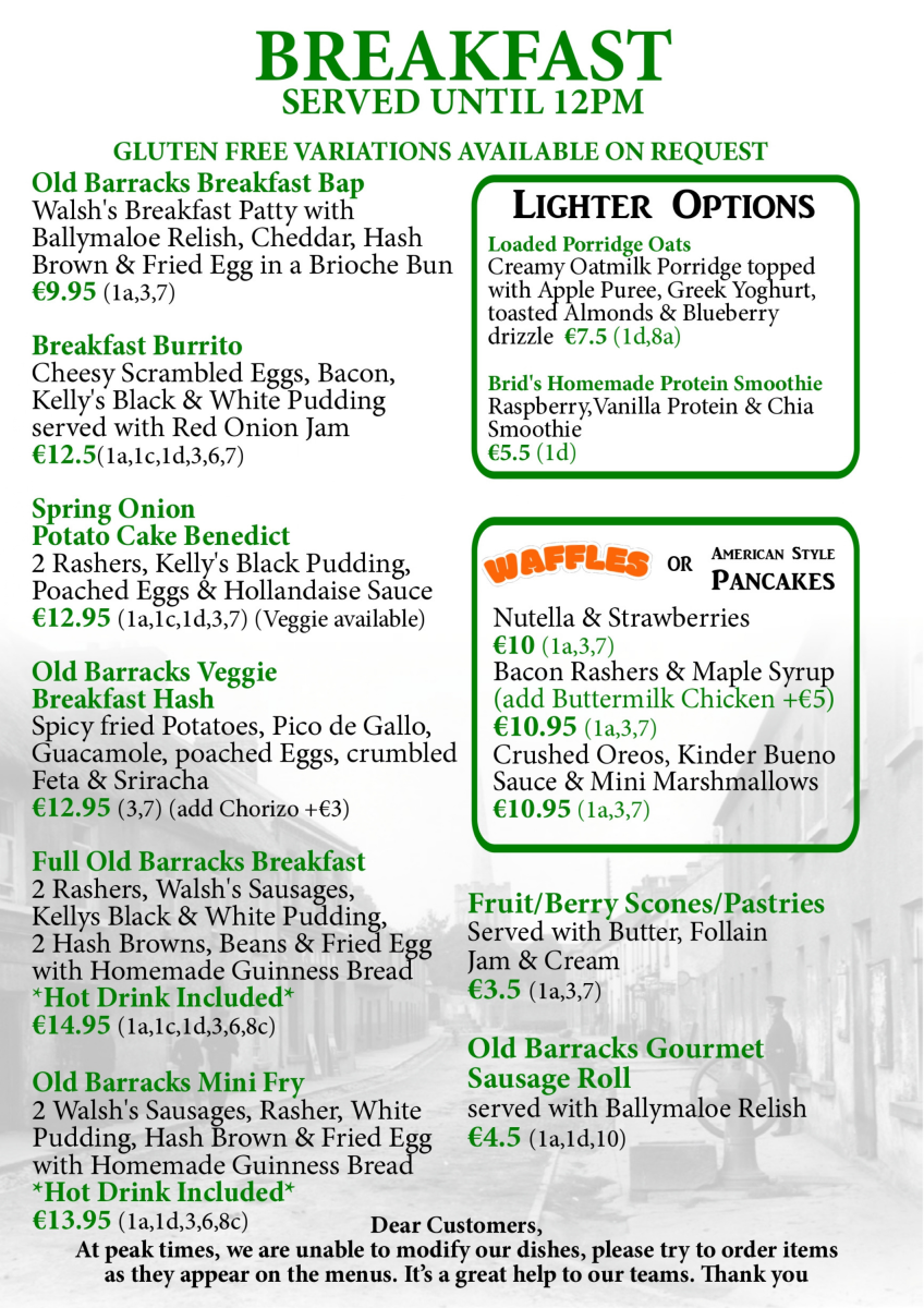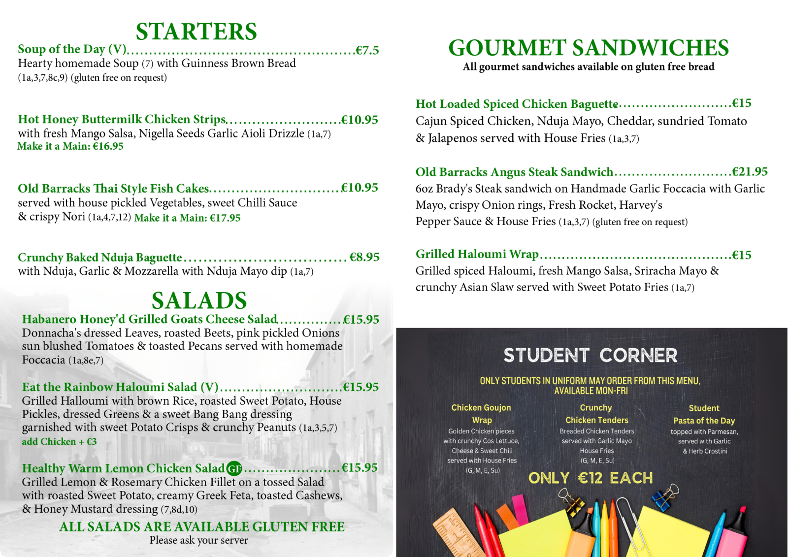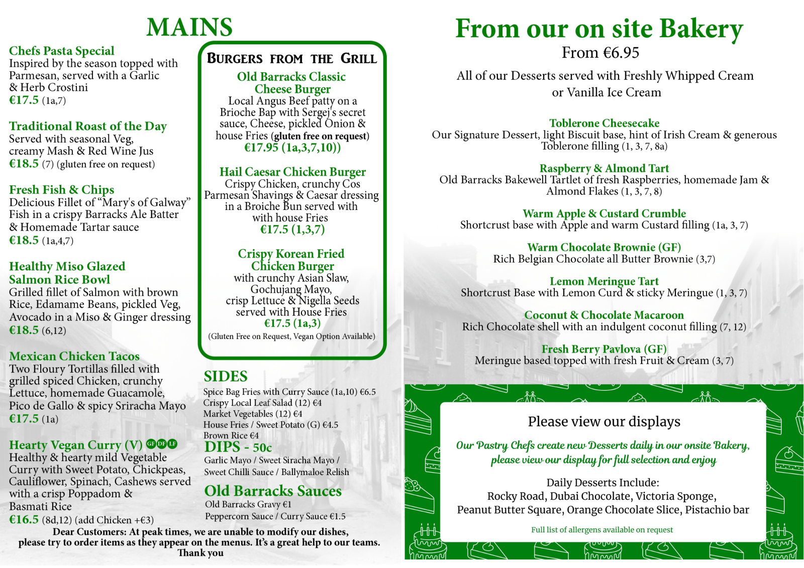 All of our Menus are Available to Take away, Please call us to order – 091-877406